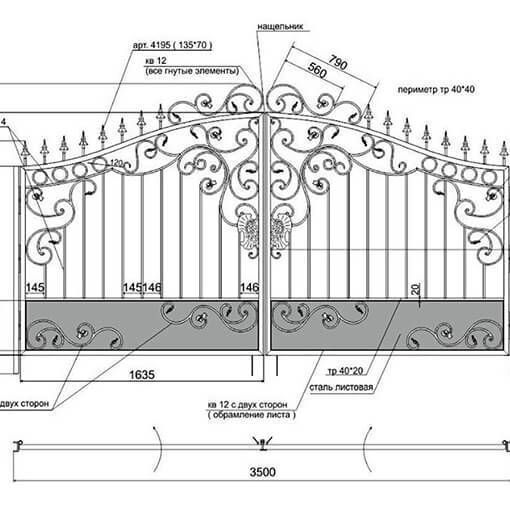 От 35.000 руб стоят простейшие кованые ворота 3х2 м с поликарбонатом.