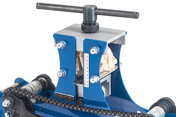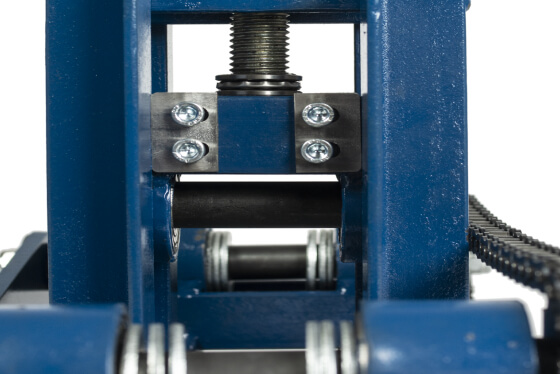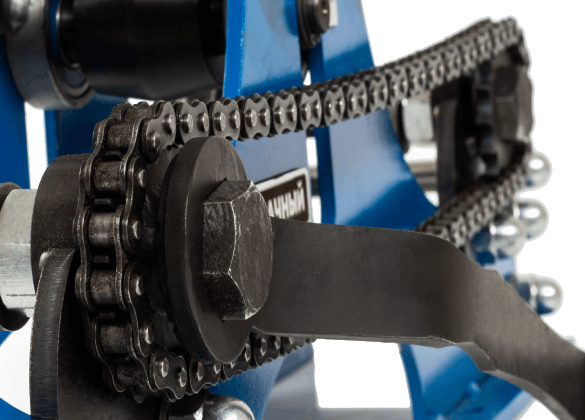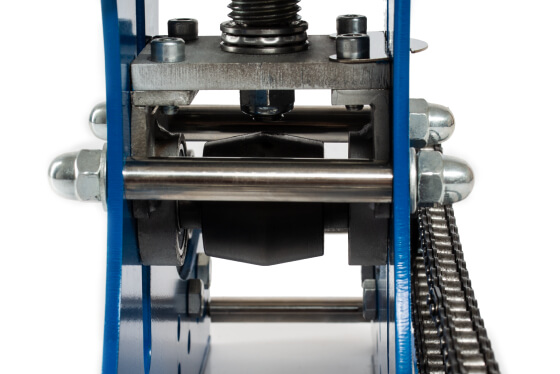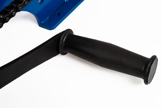 Вороненая рукоятка прижимного винта защищена от ржавчины. Рукоятка привода цепи из твердого каучука. Аккуратные сварные швы и края без задиров. Подшипники закрытого типа, которые не нужно смазывать