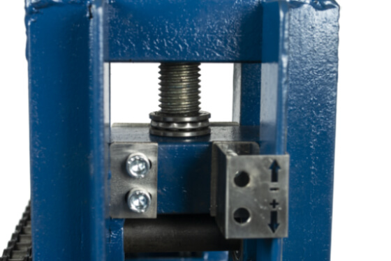 Положение опорной клети нельзя изменить. Радиус гиба контролируется только прижимным винтом.