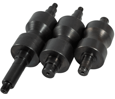 В отличие от них центральный вал трубогиба Удачный сделан в виде бочонка. Валок легко прокатывает широкий профиль без заминания. Мягко углубляет излишки металла внутрь профиля и не деформирует его форму.